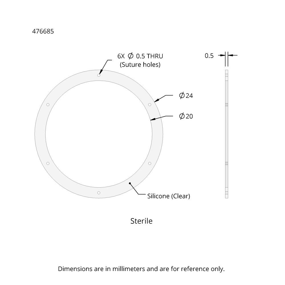 476689 | 伤口硅胶固定片 ,24mmODX20mmID X0.5mmThick | 20片 |