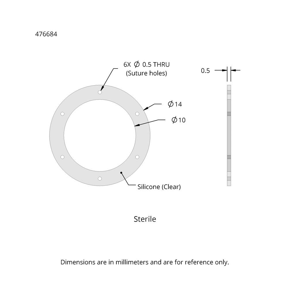 476684 | 伤口硅胶固定片 ,14mmODX10mmID X0.5mmThick | 20片 |