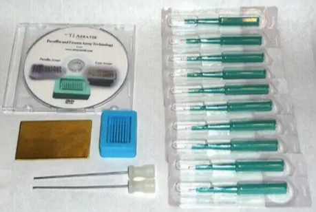 利用蜡块制作模具Arraymold,可以在短时间内将150个样本安排在一个小小的载玻片上,这仅仅需要小量的实战训练。本产品带有DVD光盘,上面将会一步步的教会你整个制作流程。